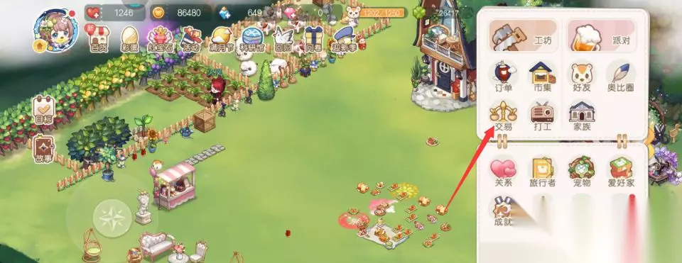 2、在弹出的功能栏中,点击交易,如图所示。