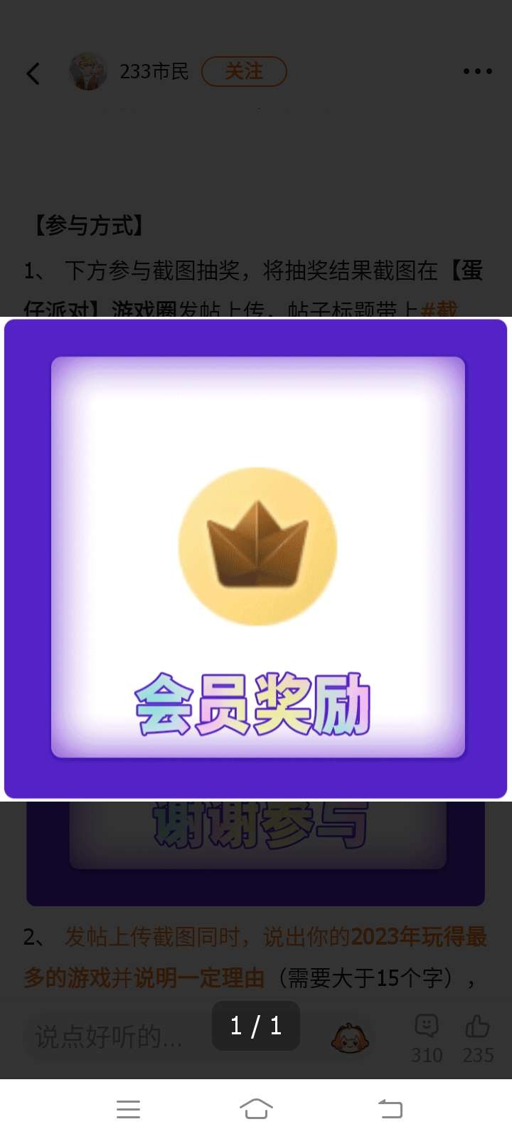 我的抽奖结果会员奖励。