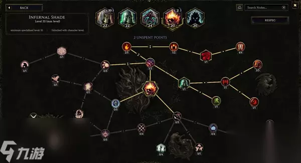 4、地狱之影 如图所示只需18点加点即可,目的是召唤物常驻急速状态(30%移速)和72%召唤物攻速和移速,右上角破甲柳胜于无(也可不点,刚需只要10个专精点)。