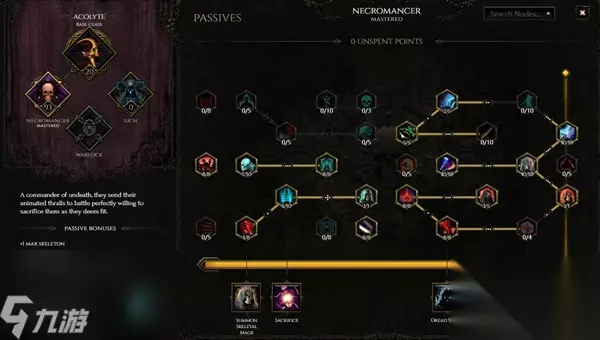最后纪元攻略汇总: 最后纪元新手职业推荐: 1、新手玩家推荐召唤流的职业,例如死灵召唤骷髅法师,可以让玩家更好地上手最终纪元。 2、下面小编就给新手玩家带来了一套死灵召唤流的玩法,希望能够帮助到新手玩家们。 死灵召唤流BD: 一、专精技能选择 1、缝合怪 如图所示24级(套装+2、遗物+2)天赋加点,不推荐更换(平民配置模拟器为22级缝合怪)。