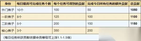 烟雨江湖太乙教门派日常任务攻略大全 门派任务按照在门派的所属辈分有所不同,每天可以完成的任务个数也不一样:(出师后,当天师门任务不会重置!)ps:做完最后一个任务不提交再去出师,出师后提交任务可以多赚一点贡献,外门出师比一阶多75,一阶出师比二阶多75,二阶出师比核心多100。
