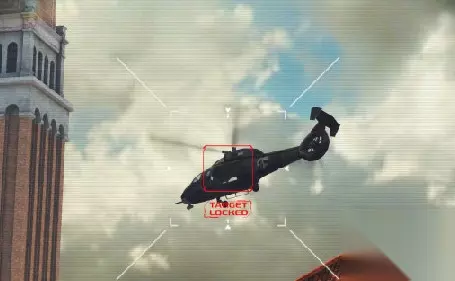 站在高台处射死所有的敌人,来到狙击枪的地方,获得它,射杀楼顶的敌人之后,过场动画到来,此关卡结束。 第四章第三关 任务:击落直升机,完成5次手枪击杀,完成3次多杀。