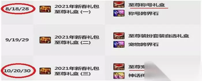 与往常一样,购买第八套时候获得至尊称号,第九套时获得至尊装扮,第十套是获得至尊宠物。而这这些都是对角色具有极大提升的道具。并且在2021年的春节礼包多买多送中,还加入了神话传送石的逆天道具,可以直接把任意一件神话装备传送到账号金库中去,实现了不可能实现的神话装备跨界。