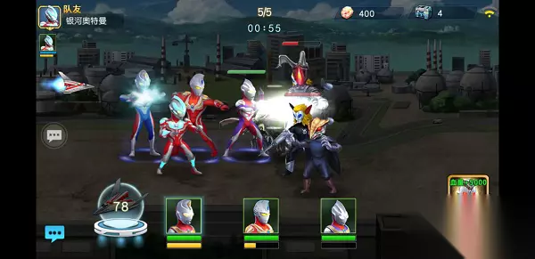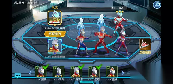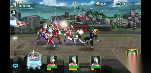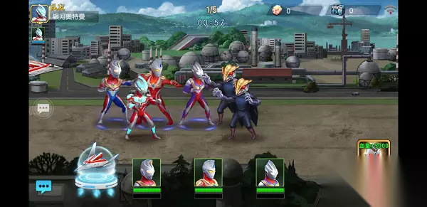 选择组队挑战之后会随机匹配在线玩家或者由玩家手动邀请好友帮助你一起通关副本,好友足底会有额外的金币加成,当然没有好友的萌新也不用担心,系统会派出三星的银河奥特曼帮助你战斗,而且战斗力超强,回血超快,唯一缺点就是没有金币加成了。