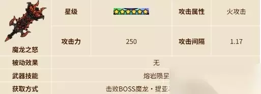 英勇之地手游龙刀获取方法: 一、龙刀获取方法 1、挑战副本 魔龙副本,挑战成功之后将会掉落。 2、魔龙世界 玩家也可以直接去挑战魔龙世界boss获得龙刀。 二、龙刀介绍 龙刀属于火属性的武器,也叫魔龙之怒,输出性特别强悍,目前这种武器只适合火系角色。玩家携带龙刀之后,会造成火属性的伤害,对战的时候会在目标位置召唤4颗陨石,从而让自身的输出能力的达到最高。绝对是火属性角色必备的武器