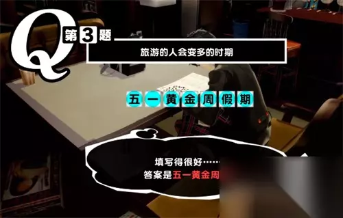 相信玩过女神异闻录5皇家版这款游戏的玩家都知道,在游戏中有一个填字游戏,玩家需要根据提示选出答案,最近一些小伙伴就被第3题给难住了,不知道答案是什么,那么小编今天就告诉大家答案。 p5r填字游戏第三题答案一览 第三题题目:旅游的人会变多的时期 答案:五一黄金周假期