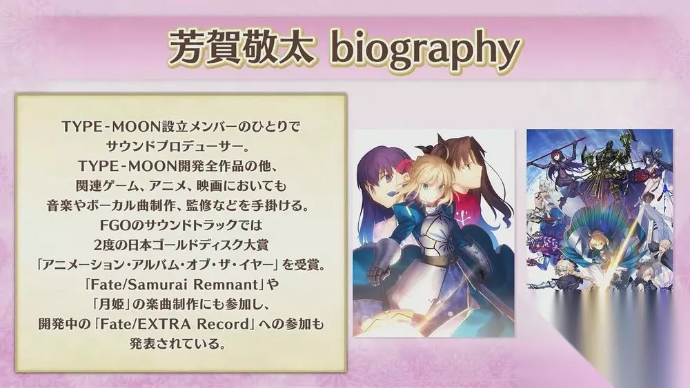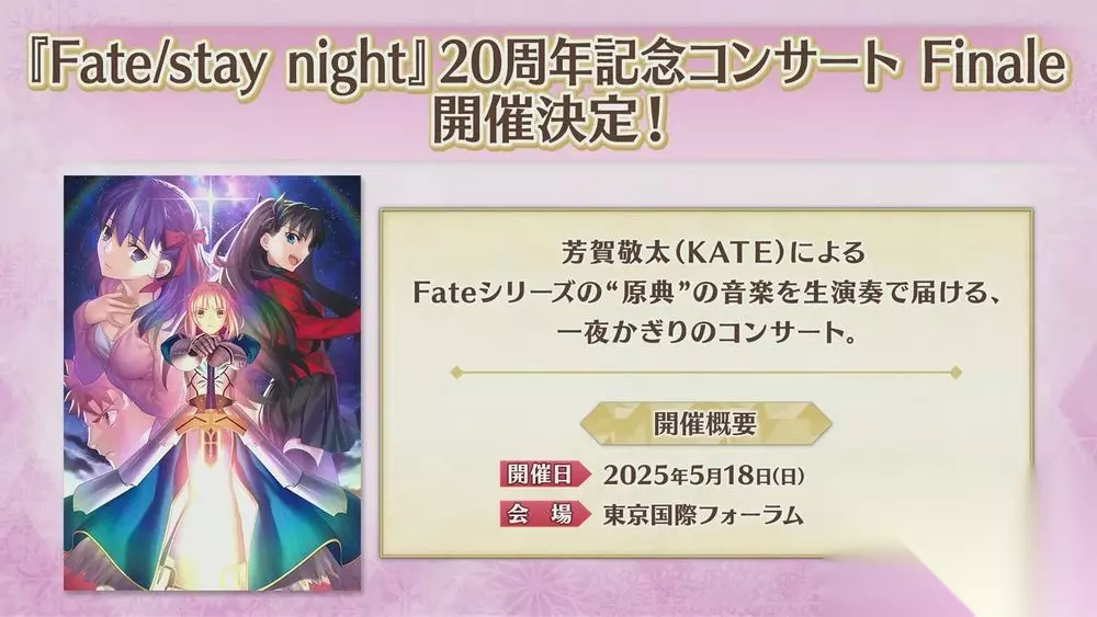 实体活动「Fate/Grand Order 迦勒底.Satellite Station 2024-2025 大坂会场」当中也实施了各式各样的活动并发表相关游戏外资讯。 活动内特别邀请到 TYPE-MOON 芳贺敬太 与 毛蟹(LIVE LAB.)组成的音乐团体 Spiral Ladder,除了介绍团体以外也针对早前推出的『奏章 Ⅲ 新灵长后继战 Archetype Inception』电视广告主题曲「Wonderer (feat. ReoNa)」分享幕后故事,并同时宣布团体将在 2025 年 5 月 18 日于日本东京举行「Fate/stay night 20 周年记念音乐会 Finale」。