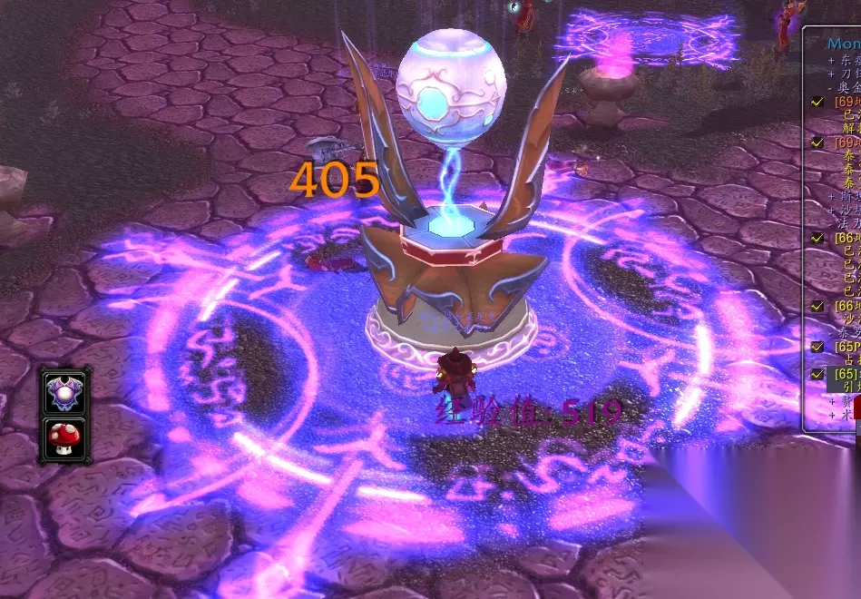 沙尔斯沃多恩 然后我们重新点击传送宝珠下楼。 找到广场中间的紫色法阵里面的魔法炸弹。 点击输入终极密码,倒数五秒之后就会大爆炸。 赶紧离开,任务就完成了,可以回去交任务了。