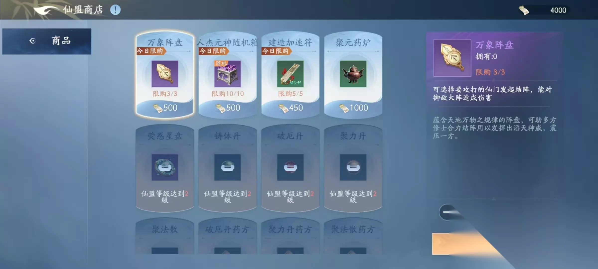接下来的功能包括仙门和战争等,都是和仙盟之间的pk活动相关,通过占领仙门,可以获得更高的收益。仙盟之间也会时刻爆发战争,胜利者能够获得更多的奖励。最后是商店,商店里会出售很多有用的道具,大家通过获取到的仙盟宝钞,就可以在商店中消费去获取这些道具。