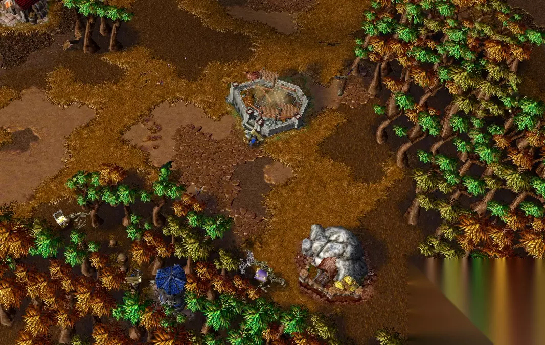 表面上看,砍树开矿的方式,我们需要投入的仅仅是那么一两个农民。实际上,想要使用这种玩法,除了需要让农民前期就去砍树(是直接把树砍掉,不是采集木材)外,还需要建造防御塔的前置建筑,并预留下一些建造防御塔和分基地所需要的资源。这必然会导致我们资源获取减少的同时,需要用来开矿的资源会更多一些。前期缺乏部队战斗力也在情理之中,说是除了英雄外,没有其它有生力量也毫不为过。 单人对战更容易被对手发现