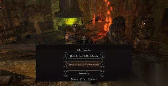 3. 当你找到最后一块符文石板后,你需要做出一个决定。 你可以将这块符文石板交给格林德或交给她身边的奴仆“小闪”,区别如下: 【1】与小闪交谈,可以使你将这块符文石板交给他。 小闪将非常高兴你能这么做,因为这块石板会使他用来赎身并摆脱自己的奴仆身份,成为自由人。 之后你将获得在每一个“遗骸”点进行锻造符文的能力。不过这样做会让格林德非常不高兴,你在她商店里购买的所有商品价格将提升一倍。 【2】与格林德交谈,可以使你将这块符文石交给她。 作为奖励,格林德将给你一块“工匠精华”并告诉你她会在将来离开天空之城,前往她向往的斯特勒威克斯联邦,因为她认为她已经掌握了符文工匠的核心技术。不过此时你将发现,她的那名奴仆小闪失去了踪影。 4. 注意,只有将符文石板交给铁匠格林德才会使你解锁她的成就。但无论你将它交给谁,这条支线都会顺利关闭。