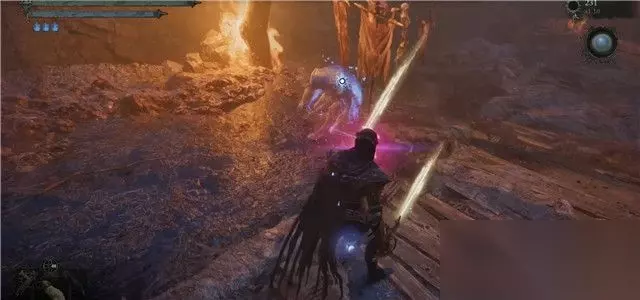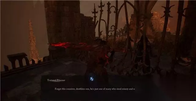 4. 拿到钥匙后,重返天空之桥,你将可以打开天空之桥中的地窖区域大门,进入地窖后你将找到一名被关押的囚犯。 沿着旋转楼梯朝下观察,你将找到吊桥和坟墓区域有一个蓝色失落之魂,使用汲取技能可以拉开这里的隐藏道路和浮石,接下来沿着这条道路一直走到尽头位置,你将找到物品【灼热的指控】。 5. 将【灼热的指控】带给被关押的囚犯,互动后她将说一些你听不懂的语言。 之后返回天空之桥或其它任何位置的遗骸休息点进行休息,再次返回被关押囚犯所在的牢笼后,你将发现那名囚犯的镣铐已被解开。 你将拾取【被折磨囚犯的头笼】。