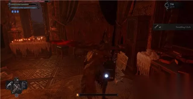 不过这次,他希望你帮他找到两样东西: 【1】损坏的标尺 位于“神圣修士庄园”迷宫式的宫殿中心底部,你可以先到达铁栅栏门升降梯,然后到达地下一片血池窖区域,你将在这里找到它。