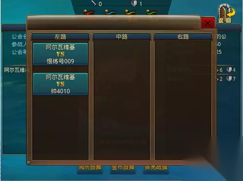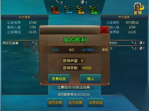 1)攻守人数: 显示当前攻方和守方的参战人数。 2)连胜排行,战斗情况,我的战败。 3)跳过战斗: 点击,直接看本轮公会资源站战斗结果。 战斗的顺序是遵循加入战场的顺序来自动分配的。 公会资源战的胜利条件已战斗最后剩余人数的多少进行判定。 5.0.0新版“海上争霸”的提前速报基本上已经结束了哦!想要体验更多功能?6月4日我们等你!还有更多新版活动正在火热筹备中,切勿错过哦!
