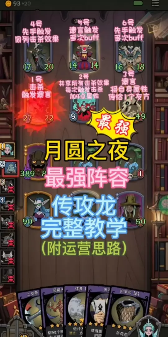 花匠老鼠制作施肥,金建筑师成长给附着,番茄,泉水加持成长,蘑菇国王不容易出辅助不建议,五系全。 佩戴机器手臂成长断网继续 固定阵营:自然,野兽,星裔 固定阵容:花匠,老鼠,建筑师,泉水 前期主养小蘑菇,金建筑师后,卖掉双倍身材,其他可以发挥想象力,主要保存有花匠在手为主,六星找四星不好找 阵营搭配:自然(番茄),机器(飞艇),战士(多盾),幽灵(古堡),龙(雌火龙),中立(飞刀前期可以复制怀表,机器手臂,火衣,饼干,宝珠,不动,后期替换)其他搭配可以发挥想象力 装备搭配:怀表(成长翻倍),机器手臂(附着数量等于成长,需断网,附着够多,一回合数千成长),饼干(多出遗言),疯狂(攻击频次,效果同上),不动(除花匠,效果同上),龙之宝珠(需要有机器,且首位,效果同上),嘲讽,火衣,增伤(建议在建筑师,防机器套娃) 咒术搭配:成长,炸弹(首选花匠,机器必上,防止套娃),引雷术搭配火衣(建筑师首先,效果同上)