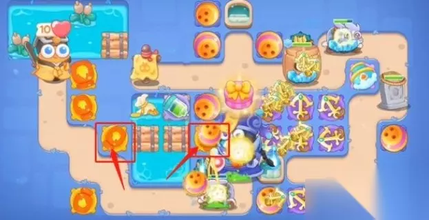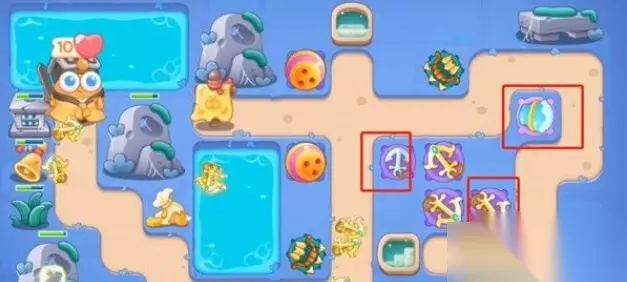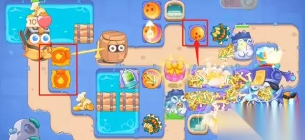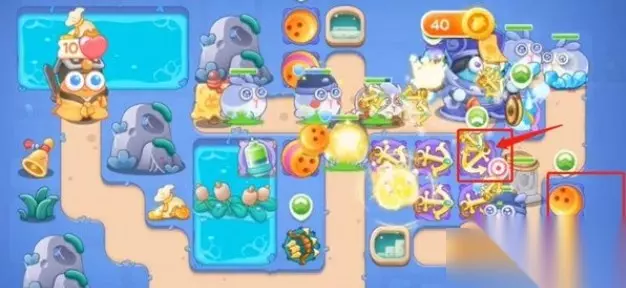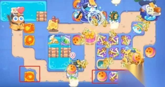 3、第三波右侧宝箱打掉变雪球塔,之后再加两船锚。