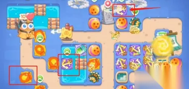 8、第八波左侧下方加一火瓶子升一级,右侧下方加一保龄球和一船锚,此时道具全清。