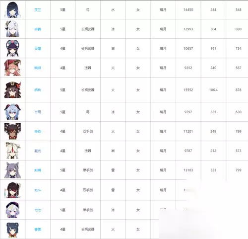 夜兰、申鹤、云堇、烟绯、胡桃、甘雨、辛焱、凝光、刻晴、北斗、七七、香菱 3、稻妻女角色