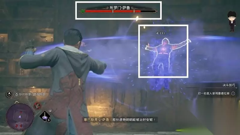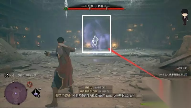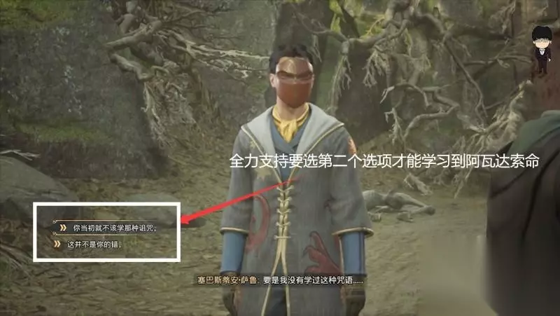 打完后一波长剧情出墓穴和萨巴斯蒂安对话,这里是学习阿瓦达索命咒的选择阶段,需要选择这并不是你的错,完全支持萨巴斯蒂安才能学习到技能,还望大家注意,接着正常对话即可结束文物的阴影下这个环节了