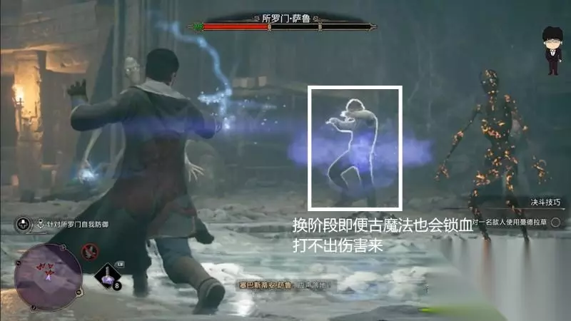 接着三阶段破紫盾,破盾后一套连招接古魔法压低血量,注意阴尸的行为动作,接着只要正常输出所罗门就能轻松无伤过关啦