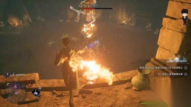接着下个过道到底有个袋子,接着前面会出现一批阴尸,通过飞来咒+火焰熊熊点燃,配合霹雳爆炸的弹射,加上阴尸的死亡爆炸,这波怪物只要在门口处理难度基本不大