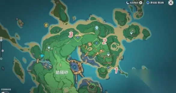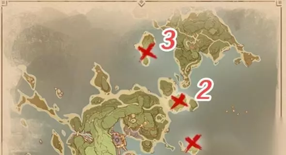 4、向泽维尔回报 泽维尔给了我们一份「神居岛崩炮」的位置图,利用这种武器轰击护罩,不知道会产生什么样的动静呢,「神居岛崩炮」的具体位置如下,我们还是依次编号为1、2、3,便于后文介绍。