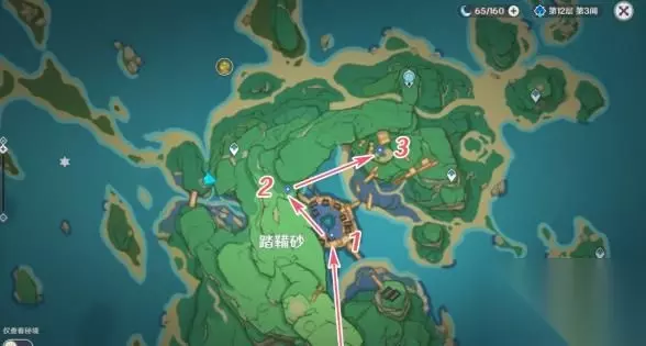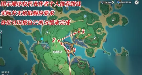 【踏鞴物语·数据大收集】 任务奖励:冒险阅历×150、原石×20、摩拉×25000 去找泽维尔,他告诉我们,之前放置的信标应该已经收集好了数据,可以取回来了。 1、回收信标(共3处) 和当时放置信标一样,推荐各位旅行者先传送到南边的传送点,之后按照下图所示顺序从高到低依次取回,中途遇到的怪物可以无视掉。