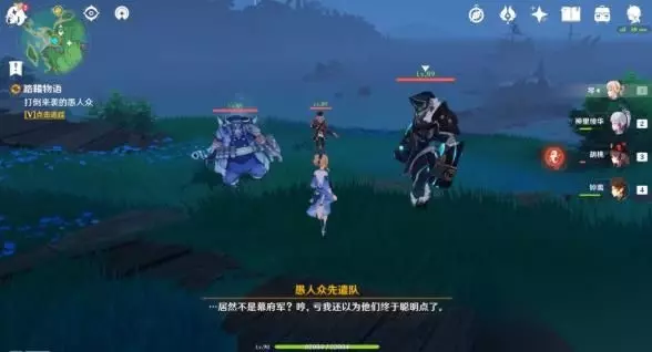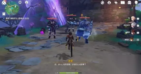 6、向泽维尔回报 击破了裂隙,能量却并没有外泄,可还没等我们一探究竟,一群愚人众就又来找麻烦了,他们果然是来一探究竟的,看到我们也明白了过来,找麻烦的并不是幕府军,居然还想让我们消失在这里...只能说你们还是挨旅行者的打挨少了。先将他们击退,再来研究「御影炉心」内部发生的事情吧,让这些愚人众看看,是谁的拳头更硬。 7、打倒来袭的愚人众 突然出现的愚人众分别是冰铳重卫士、火铳游击兵、风拳前锋军,无特殊机制及效果,乱拳打死即可。