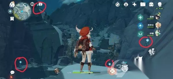对话了解到要元素视野往北走,然后你沿河向北走被一块石头堵住了,直接砸开就行,砸开后这里其实有应该有一个铁门跟一个绯红玉髓,左边有一个机关,对话后打开铁门,外面有一个红石头,把它打了之后拿起来再往回走,回去解锁刚刚被冻住的那个机关 好了以后解锁下面另外一个笼子也解开了里面有个大宝箱(带有赤红玉髓),拿了之后沿河往北出洞口,开元素视野跟提示的线继续走,开下元素视野跟线右转,一直走到山脚下。 往上爬,上来就可以看到第二个卷轴了,对话后得知在东边靠海的山脚下有情况。