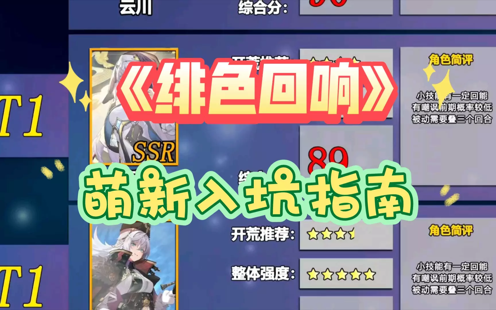 这是一篇《绯色回响》的游戏攻略帖,为玩家带来开荒角色推荐,介绍了绯红、迦楼罗、蒂娜、芭丝特等角色,还给出抽卡避坑建议,比如部分角色无需在商店兑换,会歪出来,助力玩家顺利开荒。
