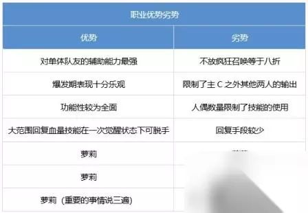 【二】操作上手 小魔女的技能机制决定了她不能走输出流。。 明确了职业定位之后,有以下的几点需要奶萝玩家注意: 1:人偶的数量是有限的,不要随意地全部交给【火热的爱意】(大天御搭配单刷除外)。 2:【小魔女的偏爱】组队不要选择自己为对象。 3:【开幕!人偶剧场】的持续时间可以通过【欢迎光临人偶之森】的释放做到延长持续时间,具体操作方法是界面左下持续时间计算器闪烁的时候进行释放。【终幕!人偶剧场】绑定【欢迎光临人偶之森】时释放【终幕!人偶剧场】的过程中前2秒按下【开幕!人偶剧场】可以立即释放并取消后者的释放动画。 4:【开幕!人偶剧场】持续状态中若奶萝操纵的疯疯熊死亡,可通过一个人偶复活,但不一定需要留一个人偶作这样用途的保险,因为技能在等级6时会添加死亡后增多1个人偶的效果,前提是只能触发一次。 5:【蔷薇囚狱】可以预判释放,即使释放的时候没有击中怪物,在持续时间内不再次按下技能键提前自爆结束技能的话,怪物走到技能上也会被控制。 6:搬砖及升级使用较多的技能:【契约召唤:赫德尔】【疯疯熊坠击】【火热的爱意】【蔷薇藤鞭】【哇咔咔!】【苦痛庭院】【蔷薇囚狱】【御敌之刺】【爱之刺痛】。 7:有使用【林中小屋】习惯的小魔女,最好不要和芙蕾雅组队(如果有抖M芙蕾雅赶着来送的话另说)。 8:【疯狂召唤】在团本爆发期尽全力保持全程是玩好这个职业的必修课。 以下是针对团体副本,给新人玩家的建议: 1:【小魔女的偏爱】针对于【禁术吟咏】的加强仅可选择一名对象,请提前观察好队友装备,尽量判断出真正的主C并将其选做偏爱对象。 2:虽然【开幕!人偶剧场】可以做到过图持续,但最好不要BOSS前一图开觉醒,如果有这种习惯,建议门口读秒时释放,队友集合完毕进图后可以跳过动画演出阶段,算是一种小技巧(俗称卡门)。 3:奶萝的身板较脆(异常手邪念戒抗性右保命除外),对走位要求比较高,需要了解怪物机制,新人并不建议作为主号打造。 4:被动技能带来的怪物受属性伤害增加是需要攻击到怪物才计算的,其他人也是需要加血的,人偶虽然缺但是留着也没法下崽,为了避免队友问候您的家人,请自行拒绝加好BUFF扔完觉醒技能就逛街吃瓜的不良行为。 【三】推荐输出手法 1、自己顺手,怎么做都可以。需要注重一定的技能冷却保证全程【疯狂召唤】。 2、推荐为进图释放【禁术吟咏】【小魔女的偏爱】【魔法盾】【契约召唤:赫德尔】,小怪房间使用【御敌之刺】【疯疯熊坠击】【哇咔咔!】等技能聚怪,精英及BOSS房间连续使用【疯狂召唤】后使用【蔷薇藤鞭】【苦痛庭院】【挚爱囚笼】回复人偶然后循环,期间使用【细心缝补】【爱之急救】【永恒的占据】等回复、复活队友,视机制完成或队长要求使用觉醒技能。 以上就是今日为大家带来的NDF详细攻略文章了,希望这篇攻略能够帮助大家,感谢大家支持233乐园。