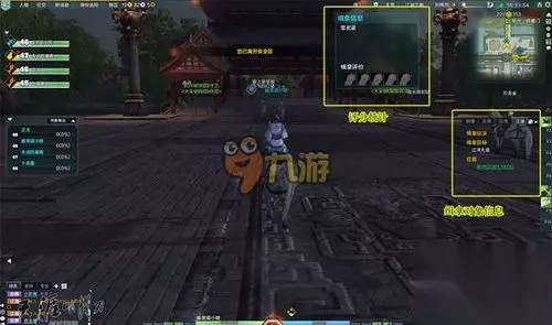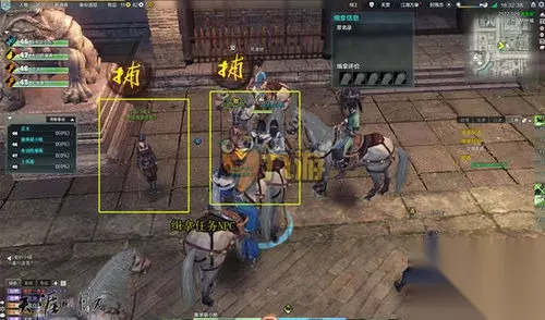 2.领取完缉拿任务之后,上方会出现一个缉拿信息,里面的缉拿评价是一个对于缉拿过程的评分标准。而在玩家右侧的“江湖”窗口下则会告知当前缉拿任务的对象和具体的坐标。玩家看到坐标之后就可以跟着自己的队友一起前往缉拿目的地了。