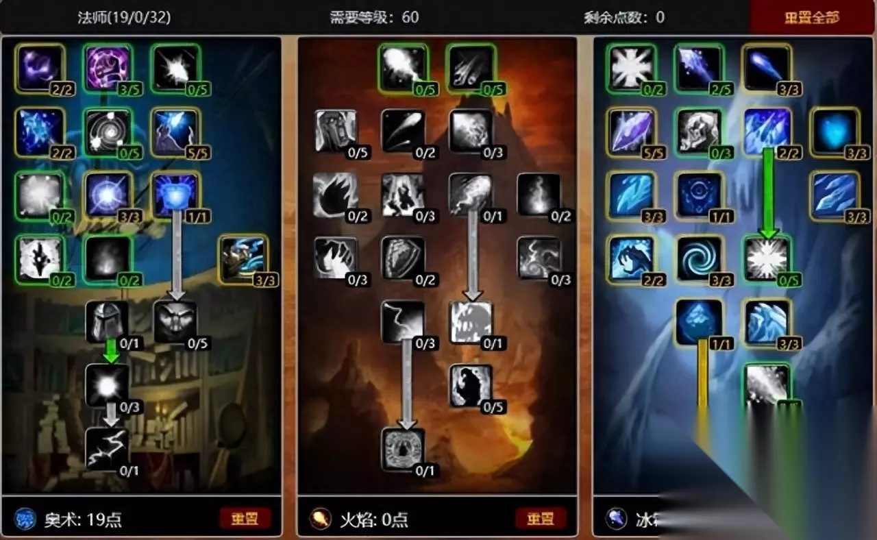 42-60级点奥术天赋,补充法力恢复,增加护甲以及降低敌方的魔法抗性。
