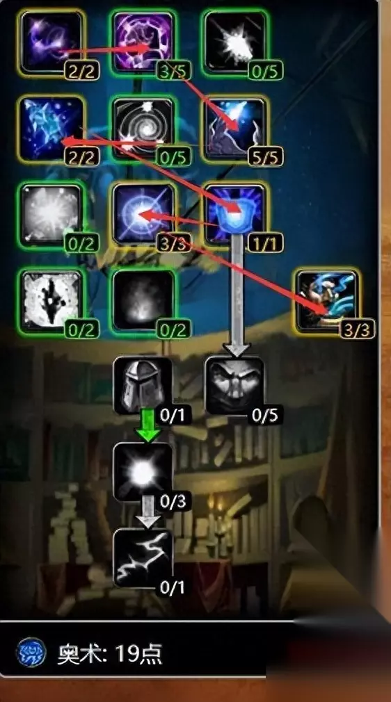 43-55级,点奥术天赋,降低敌人的魔法抗性和法力值消耗,同时补充魔杖的补刀伤害。