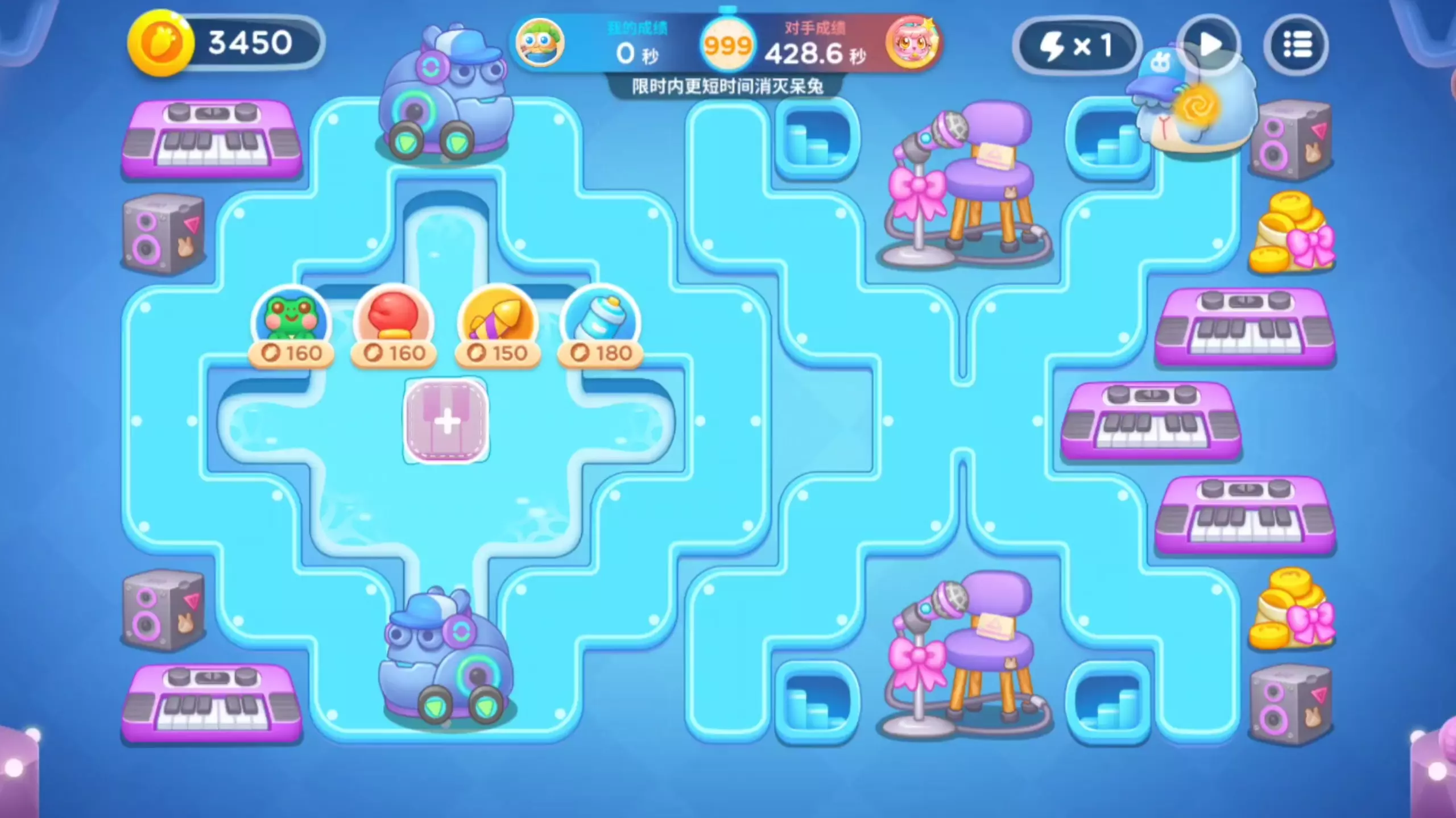 这是保卫萝卜4星途101 S23关卡的通关内容,展示了在该关卡中布置炮塔消灭呆兔的过程,最终以376.9秒完成关卡,比对手用时更短,呈现了炮塔布局与闯关的实战画面。