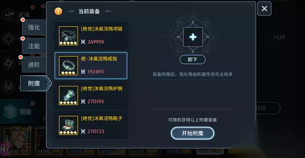 除了有新玩法的上线,本次版更还新增了个装备附魔的功能,在装备附魔后,强化等级和属性将完全继承。