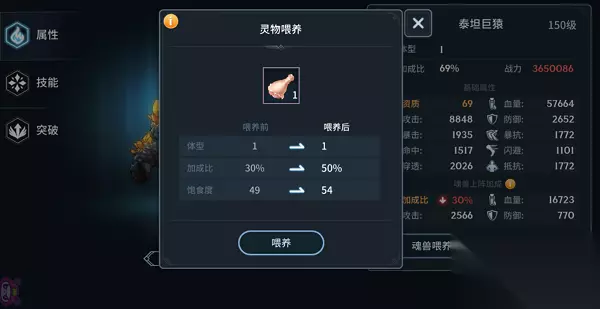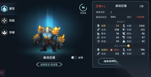 举个例子,像被孵化出的魂兽泰坦巨猿,可以使用魂力提升魂兽等级,也可以通过魂兽喂养改变魂兽的体型,增加相应的属性加成,也就是说别看现在的泰坦巨猿小小只,他是会长大的变得更强大!