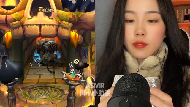 这是一则结合《神庙逃亡》游戏画面的ASMR助眠内容,创作者通过对着麦克风做出多种动作制造出触发音,搭配游戏的跑酷场景,为观众带来兼具视觉与听觉的助眠体验。