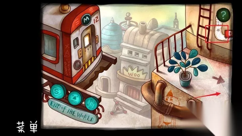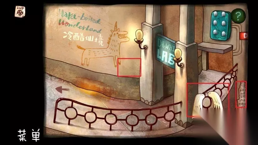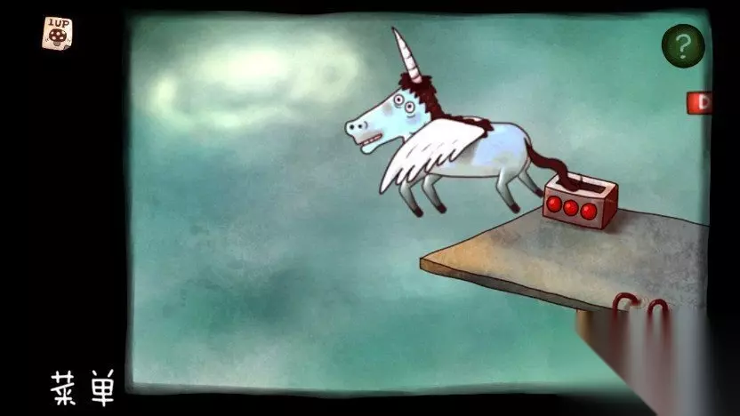 第六章-世界尽头 39.在右上角拿到记忆碎片,往右走,在扶手上拿到翅膀,墙上拿到蘑菇图片,最右边拿到记忆碎片,回到列车网上爬,把翅膀给独角兽。