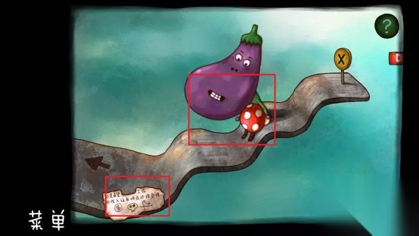 41.往上爬拿到记忆碎片,把蘑菇图片放入机器,拿到蘑菇,往右走,把蘑菇给茄子看到线索,1橘01绿001橘,左下方记忆碎片拿走,回到下方拿翅膀的地方。