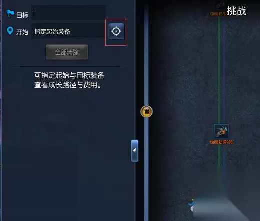 当我们想快速知道从A段武器到B段武器的时候,可以使用这个查询功能。其中红框框住的是当前你装备的武器,选定之后即默认你的武器为起始装备,而目标装备需要你手动去界面选择。