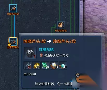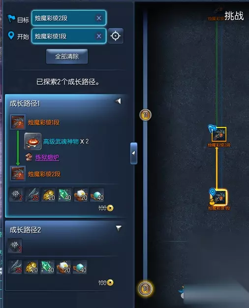 (演示A段到B段) 查询系统会为我们找出有多少个成长路径。并且会把材料也同时标记出来。
