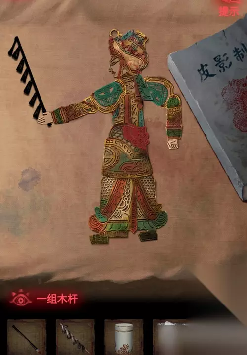 14.点击左下角箱子,点击最右下角那个物件,获得皮影头部