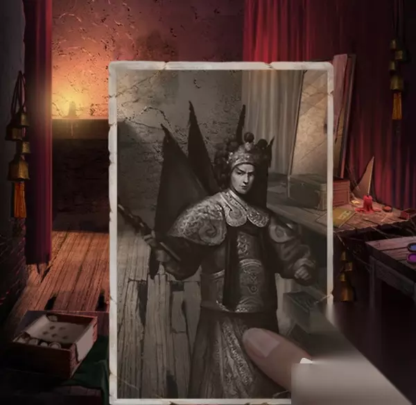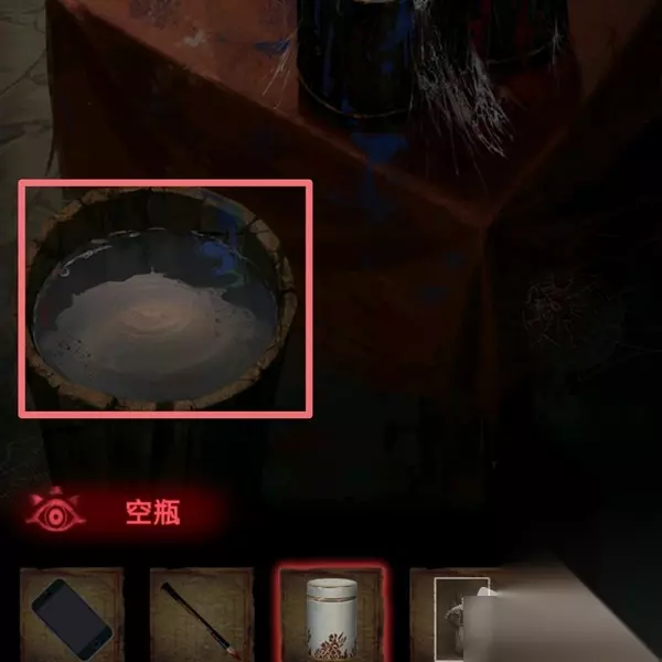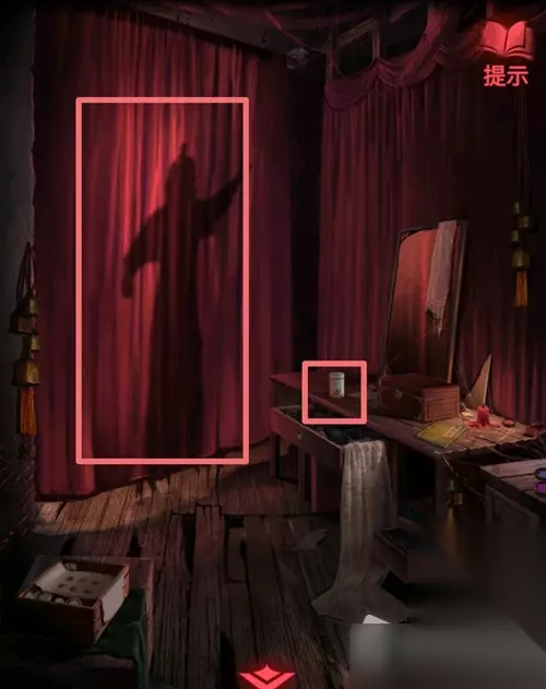 12.进入房间后,点击桌上的小瓶子,获得空瓶,然后点击左边的红色幕布,点击架子上的戏服(点开后有个贴脸高能)