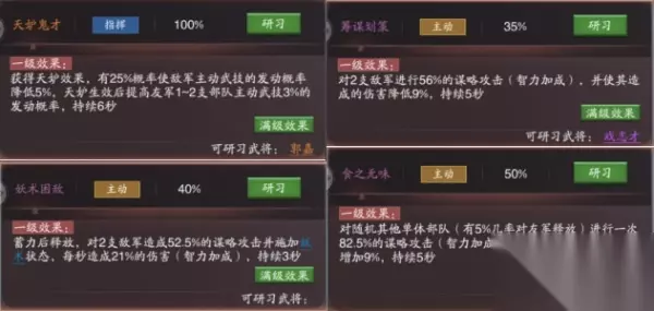 徐庶可以携带【决水淹城】【天妒鬼才】(橙色技能)【偃旗息鼓】【筹谋划策】【食之无味】【妖术困敌】(紫色技能),这些研习技能徐庶都可以尝试携带,根据游戏的进度和资源的支撑能力可以做出阶段性选择,由于徐庶智力成长略高于法正,建议携带一些输出技能加强队伍伤害能力,前中期可携带【食之无味】【筹谋划策】【妖术困敌】等紫色技能,比较容易研习,且中期伤害很足,后期伤害武技建议携带【决水淹城】,也可以携带【薄命】【天妒鬼才】来配合提高其余两个主动武技的触发概率。