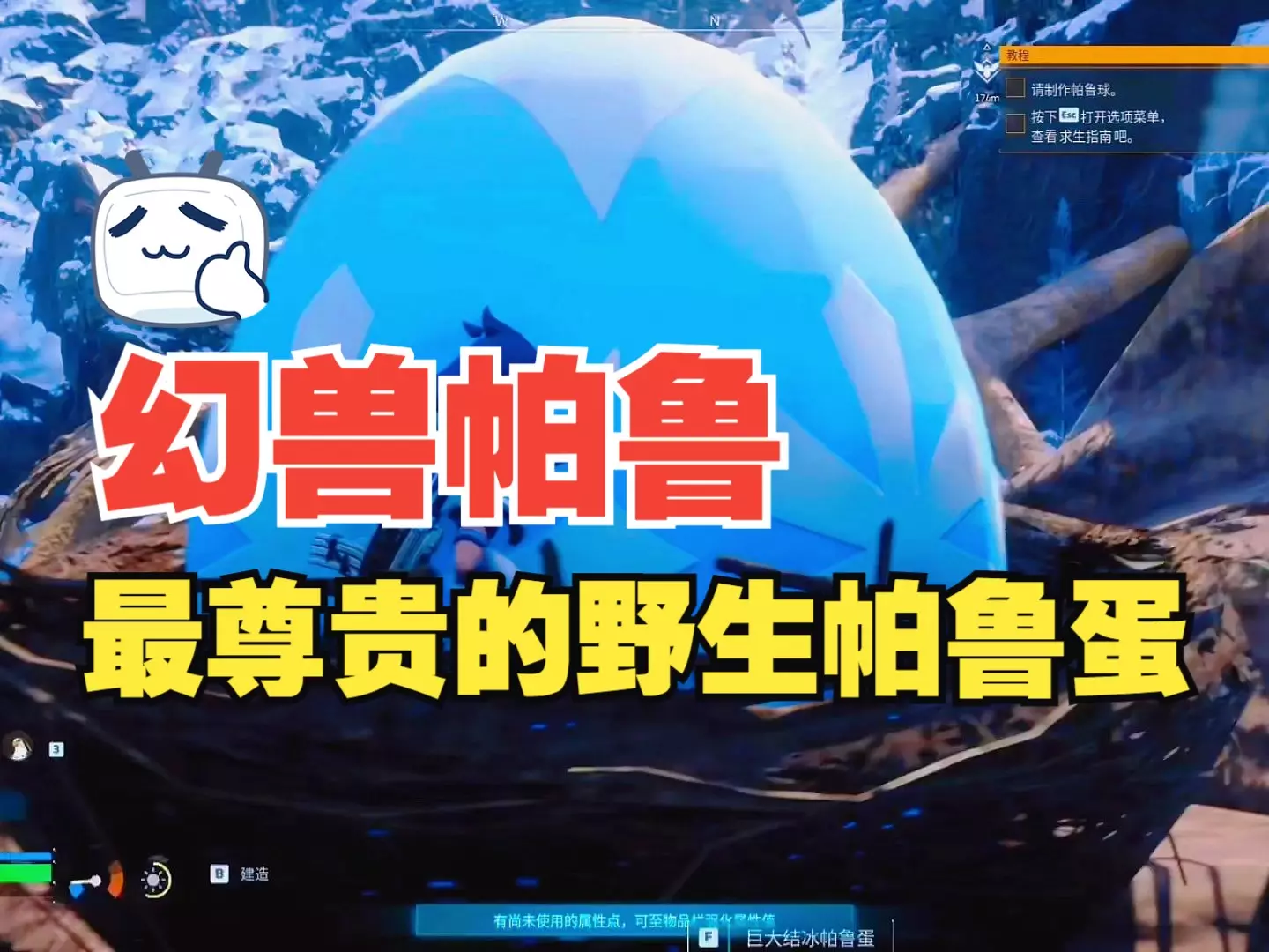 这是生存游戏《幻兽帕鲁》的游玩内容分享,展示了玩家在游戏里攀爬、骑乘帕鲁、战斗、获取帕鲁蛋和道具的过程,还提到想培养阿努比斯,以及帕鲁偶尔会掉链子的情况。