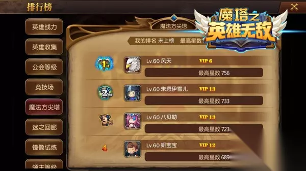 尽在掌控,玩转三大功能玩法 作为《魔塔之英雄无敌》的特色玩法,魔法方尖塔、谜之回廊、镜像试炼让不少人又爱又恨,爱是因为这三个玩法能获得高大上的称号,也能在勇气商店兑换到橙色乃至金色这种顶级装备,以及开到各种各样的材料,恨则是低战玩家挑战这些还是有一定难度的。正是因为难才好玩,才有挑战性,所以当遇到瓶颈时,去排行榜看看大神们在同等战力下能通过多少关卡,拿到多少积分,这样才有奋斗的目标不是?在社区和大家多多交流心得,多多请教,假以时日,你也能在这些榜单上占有一席之地。