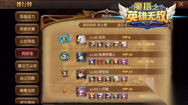 洞悉对手,竞技场让你知己知彼 竞技场一直让不少人头疼,为什么明明战斗力比对方高却打不过他呢?有种战斗力叫虚高,并不能说明问题,搭配选择好英雄才是取胜之道。所以下次开战前不妨先看看对手的竞技排名和他的英雄信息吧,虽然竞技场也能查看对手信息,但排行榜显得更直观。