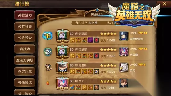 英雄可晒战力,收集控福音 《魔塔之英雄无敌》新版本中新增的英雄战力榜让许多玩家能有机会一展自己最强英雄战力,甚至所穿戴的装备也能看到,足够炫酷吧!你的最强英雄是谁呢?快来晒一晒吧!《而英雄收集榜也满足了所有收集控的心愿,得以秀出自己的收集成果,如果偶然能碰到比你收集的英雄数量还要多的玩家,不妨约见一下交流交流心得,或者干脆来一场PY交易吧。