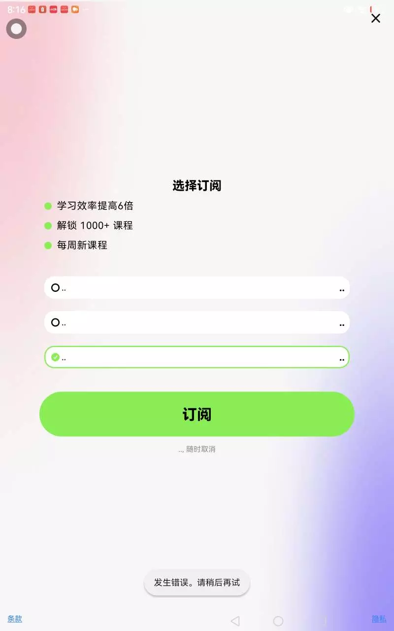 他不给我订阅成功。